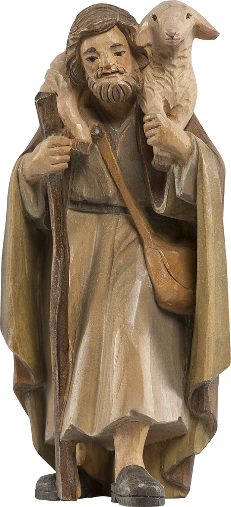 Standing Shepherd with Sheep on Shoulders - South Tyrol pine nativity scene