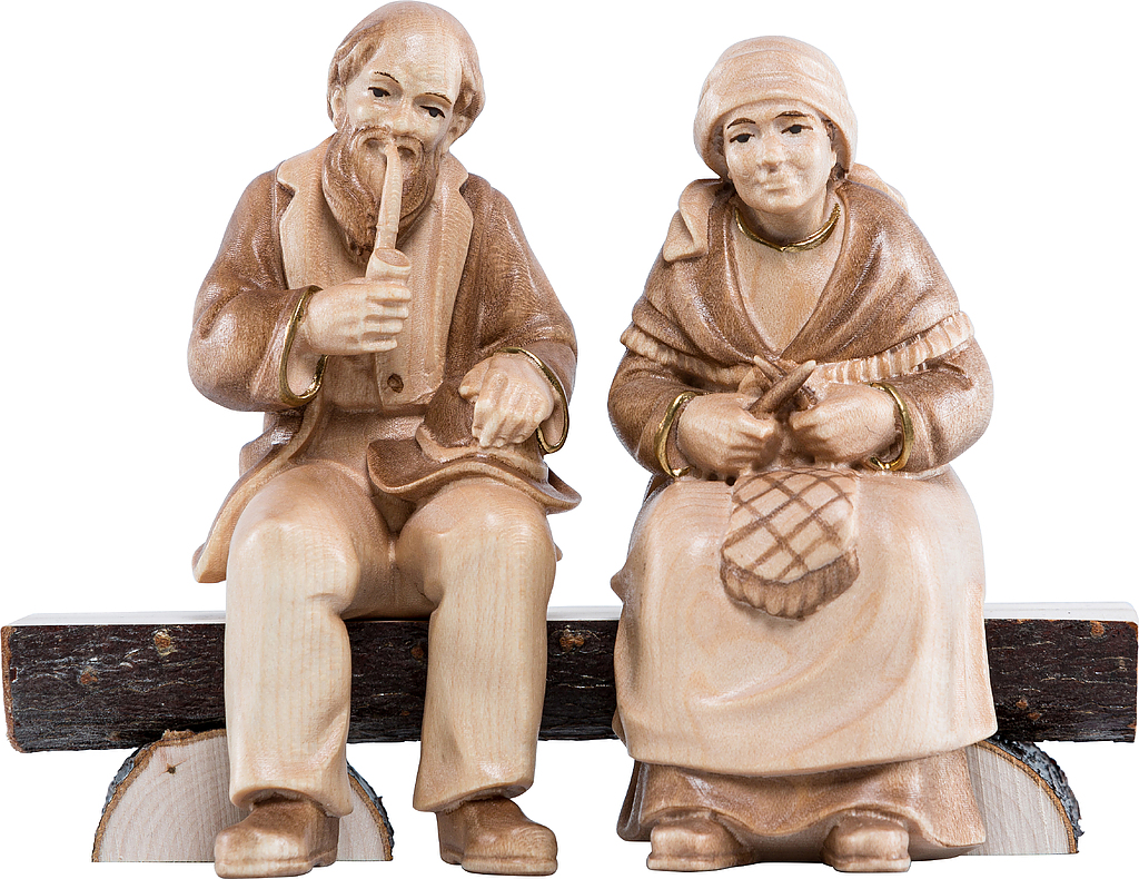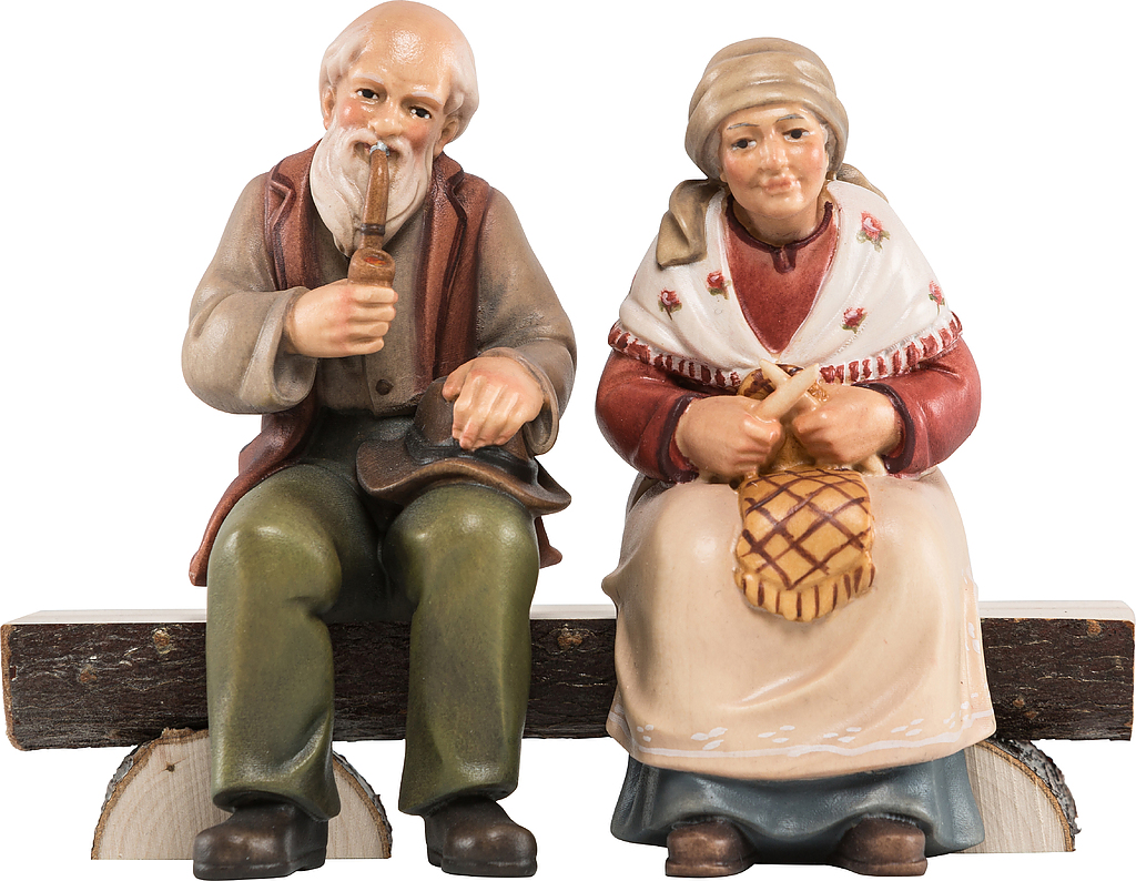 Coppia di vecchietti su panchina - Presepe Südtirol